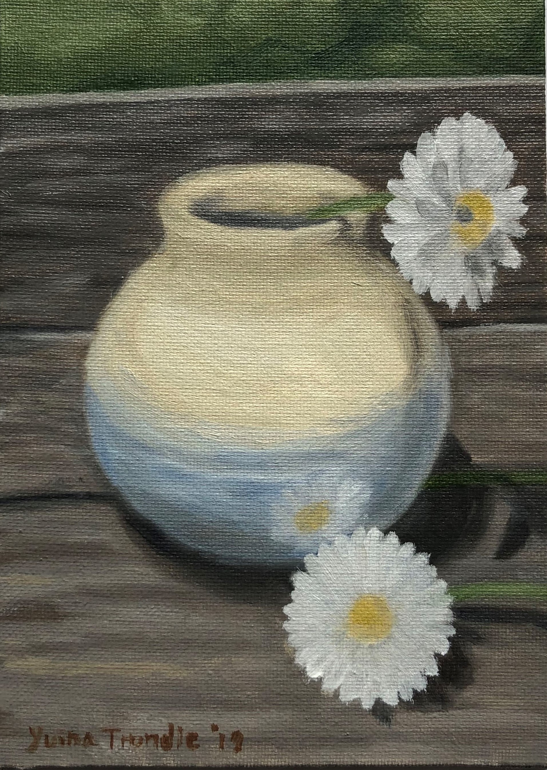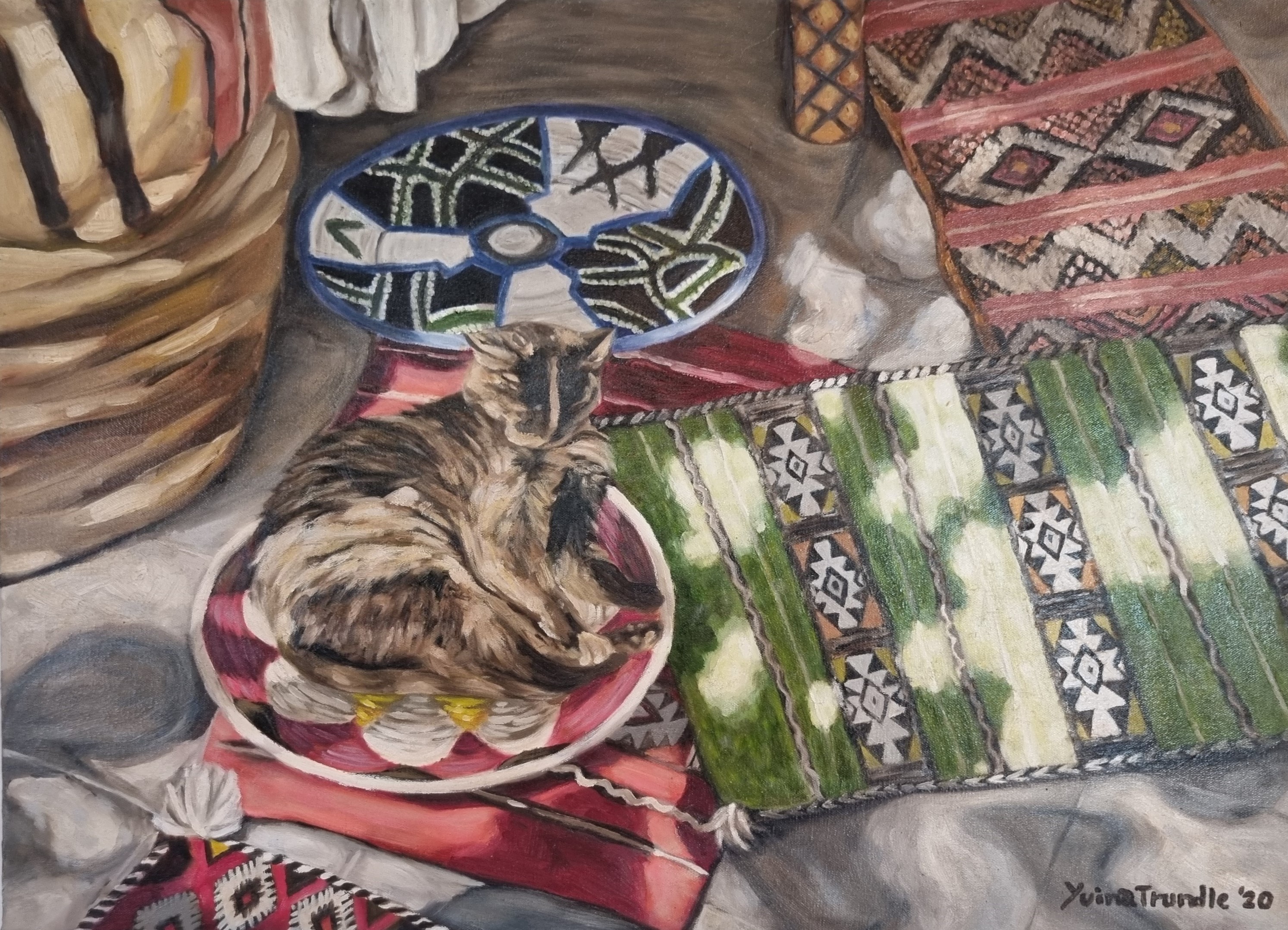 Yuina Trundle was born on the island of Kyūshū, in southern Japan. Her art career began in County Kildare, where she now calls home. She has made a name for herself in Ireland where she spends her time working in many creative media, including painting with oils and acrylics, knitting and crocheting, among other crafts and hobbies.